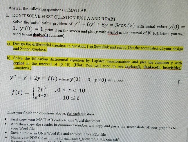Answer The Following Questions In Matlab 1 Don T Chegg Com